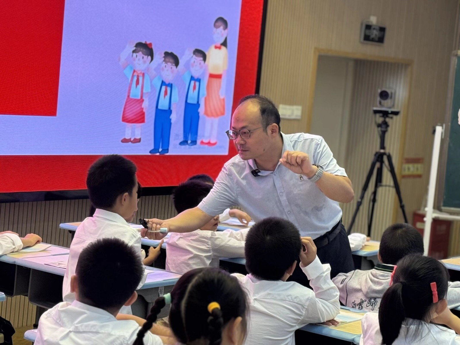 课后研讨中,老师们一致认为,这两堂课打破了学科壁垒,将德法课的“知”与音乐课的“情”通过丰富互动深度融合,真正实现了“以美育人、以情育德”。此次公开课不仅为教师提供了跨学科教学的实践范本,更推动学校“素养导向”的德育课程建设迈向新台阶,助力一年级学生系好爱国情怀的第一粒扣子。