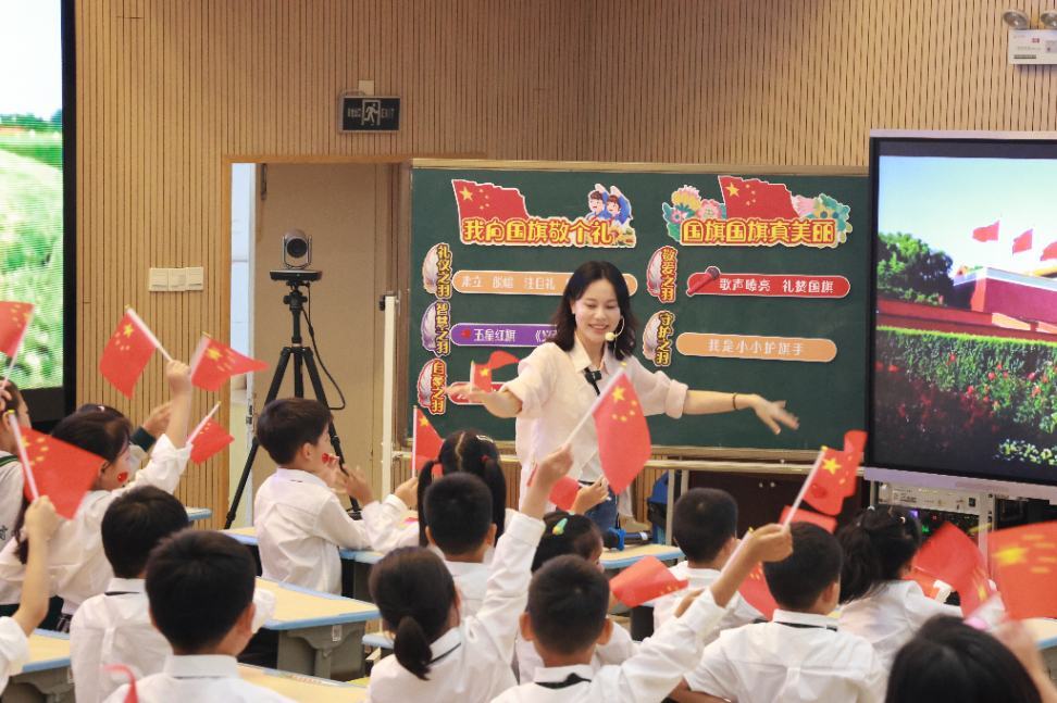为落实“跨学科、贯素养、精准育”一体化育人理念,9月26日,南邮小学以“小鸿雁五星礼赞——致敬我心中的国旗”为主题,在三楼报告厅开展《我向国旗敬个礼》校级道德与法治公开课。本次课程创新融合道德与法治、音乐两大学科,由德法曲文双校长与音乐学科赵芸老师执教,全校德法教师、音乐教师参与观摩研讨。