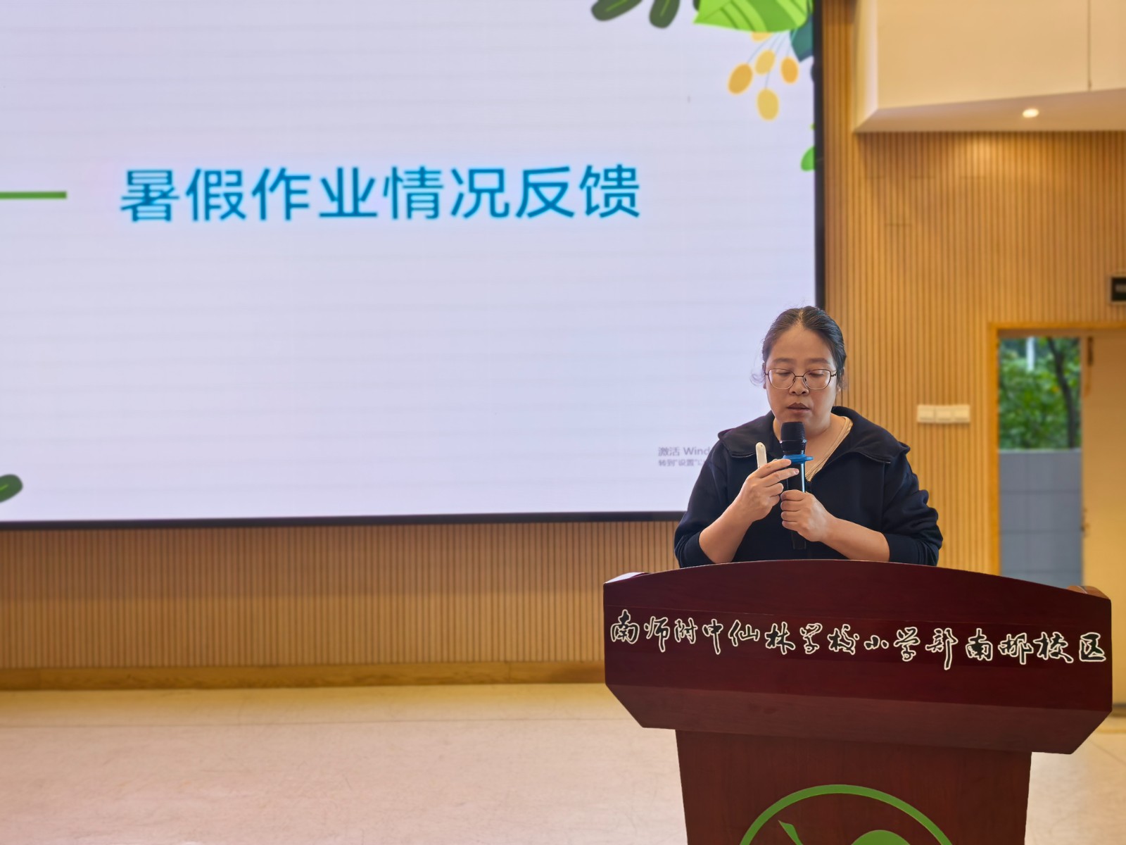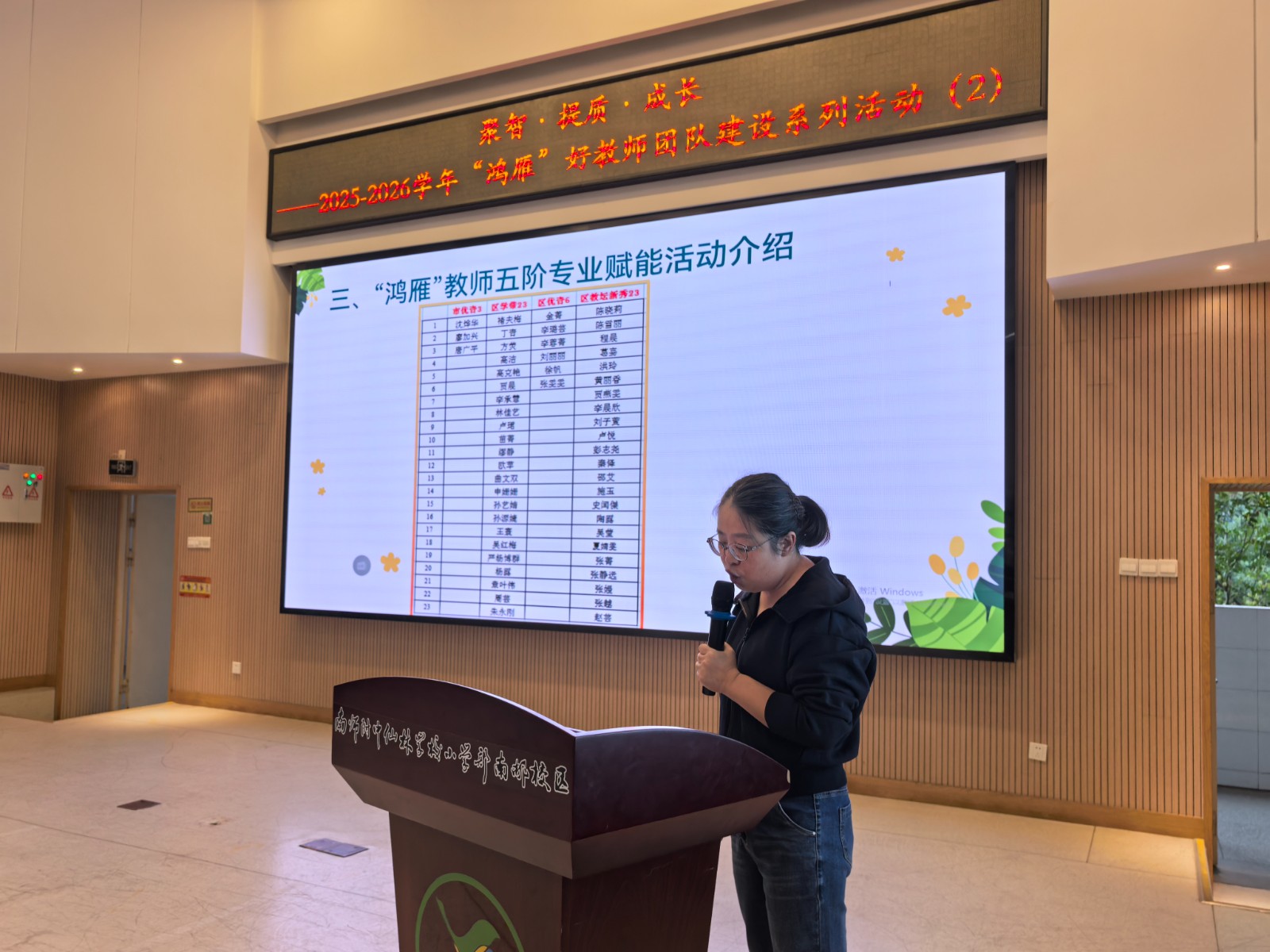 为推动教师专业水平提升,构建高质量教研生态,促进教师全面发展,2025年10月15日,附中仙小南邮分校教师发展中心组织开展了2025-2026 学年“鸿雁”好教师团队建设系列活动(2)。本次活动的主题是“聚智·提质·成长”。会议围绕教师暑假“学思课堂”作业反馈、学期教科研安排、“鸿雁”教师五阶专业赋能活动介绍等核心内容展开,全校教师共同参与了本次会议。