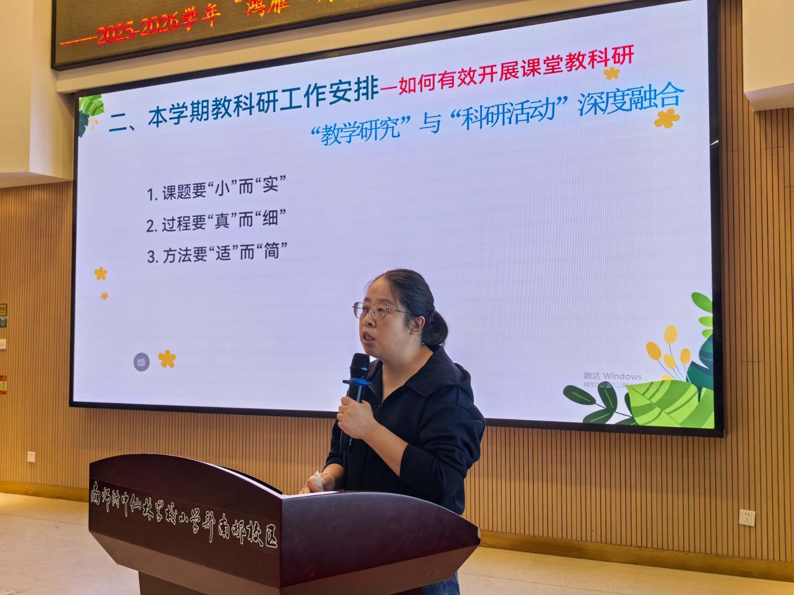 围绕“如何有效开展课堂教科研”,会议明确四大原则:课题选择要“小而实”,聚焦具体教学问题;研究过程要“真而细”,杜绝形式化;研究方法要“适而简”,匹配教师实际能力;成果应用要“用而享”,反哺教学并共享经验。同时,还公布本学期教科研重点任务,提醒老师们有针对性地提前准备,争取科研成果最大化。
